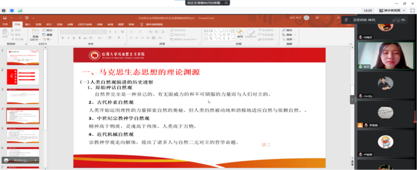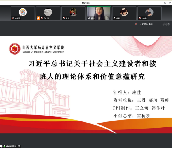 本期“文瀛求索”理论学习班中,入党积极分子分为五个小组分别围绕“马克思生态思想的理论形态及逻辑演进研究”“习近平总书记关于民生的重要论述研究”“习近平总书记关于社会主义建设者和接班人的理论体系和价值意蕴研究”“中国共产党以忧患意识促进长期执政能力提升的百年经验研究”“铸牢中华民族共同体意识融入大中小学思政课一体化研究”五个主题进行专题学习并汇报展示。各组将专题理论学习同学术研究实践紧密结合,深化对党的二十大精神的感知与体悟,汇报主题鲜明,形式丰富,层次清晰。