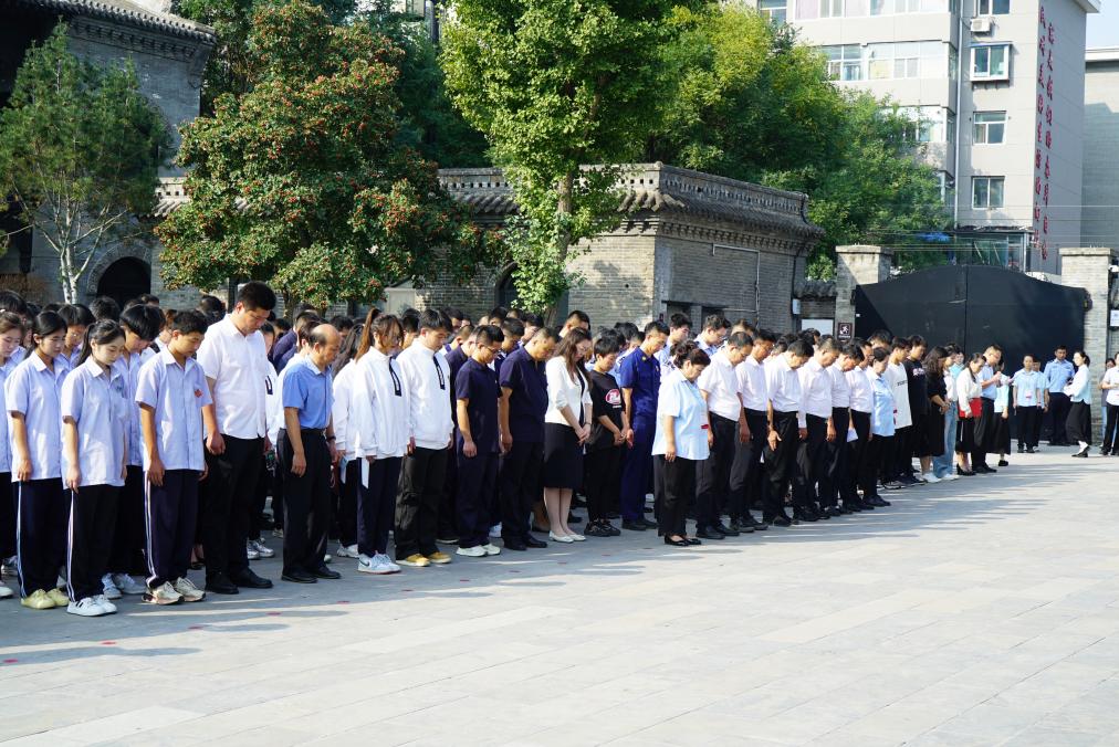 当日上午9时18分,全体人员静默肃立,神情凝重,共同奏唱国歌。之后全体人员向在中国人民抗日战争中英勇牺牲的先烈及九一八事变中的死难同胞默哀一分钟,表达对逝者的深切怀念与哀悼。