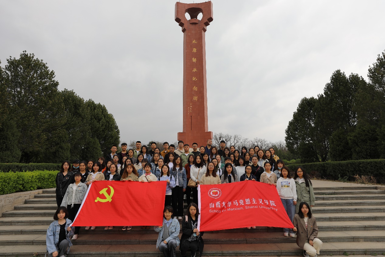 下午三时许,党日活动开始。员工代表向长眠于此的两千余名英魂敬献花篮,全体党员、积极分子面向纪念碑为民族独立和人民解放事业浴血奋战、英勇献身的革命先烈默哀三分钟,并在党员代表宋慧亮领誓下重温入党誓词。随后,党员代表张惠棠带领全体同学回顾太原解放的经过,告诫全体党员务必保持斗志,奋勇向前,方能无愧于先烈,无愧于党的期待与嘱托。