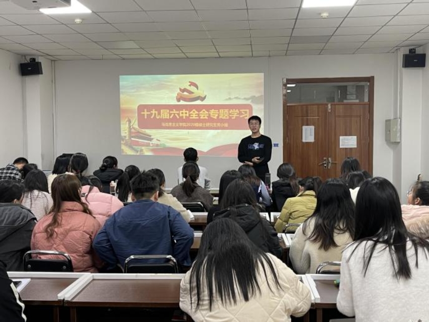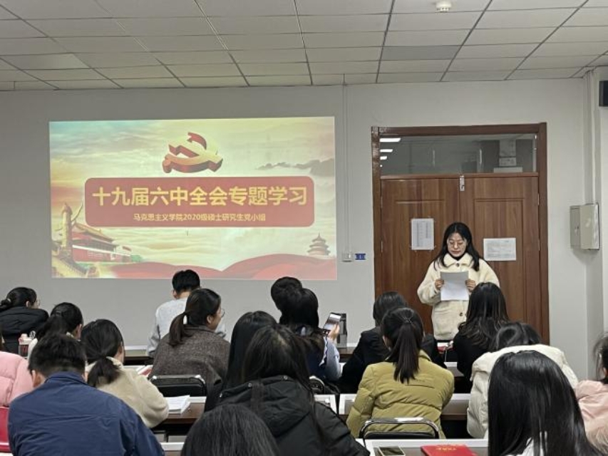 风雨百年砥柱人间,以史为鉴开创未来。为全面学习贯彻党的十九届六中全会精神,深入开展党史学习教育,引导广大党员同志增强政治自觉、坚定历史自信,11月30日,永利集团3044am2020级研究生党小组在公司教室一开展党的十九届六中全会专题学习会。全体党员和入党积极分子参加学习,会议由党小组组长武泽馨主持。