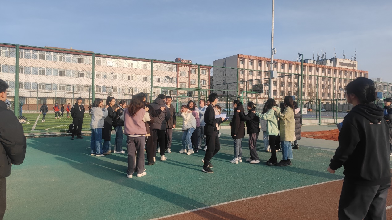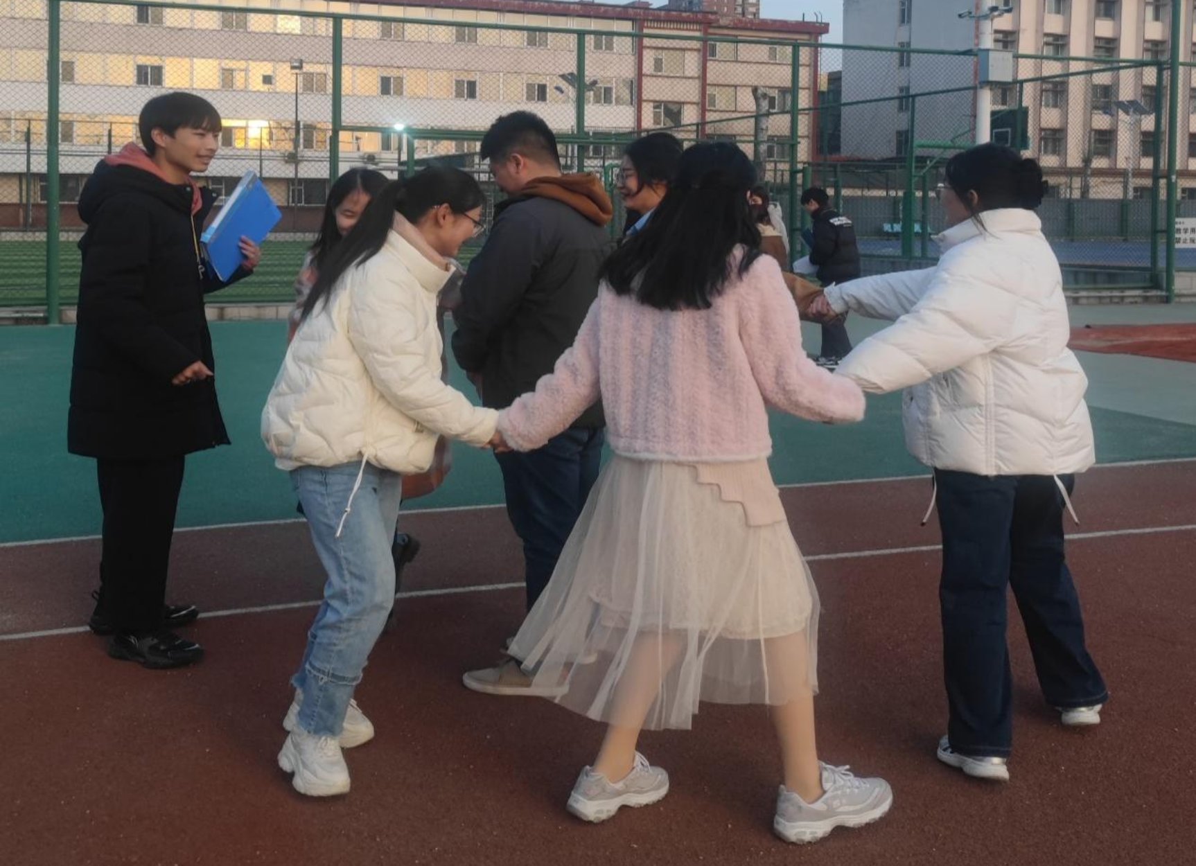 活动由“滚雪球”、“戴高帽”“信任大考验”等5个游戏组成。“滚雪球”和“戴高帽”要求同学们两两成组,相互交流,互相称赞,让同学们在交流中体会到了倾听与赞美的重要性,进一步加深了彼此间的了解。“信任大考验”要求挑战者闭眼站在中间,其余队员围圈形成一个安全承接区,接住中间倒下的伙伴,让大家用责任感和信任感战胜恐惧,切身体验什么是“充分信任”和“相互依赖”,在愉快的氛围中增进了大家的友谊。