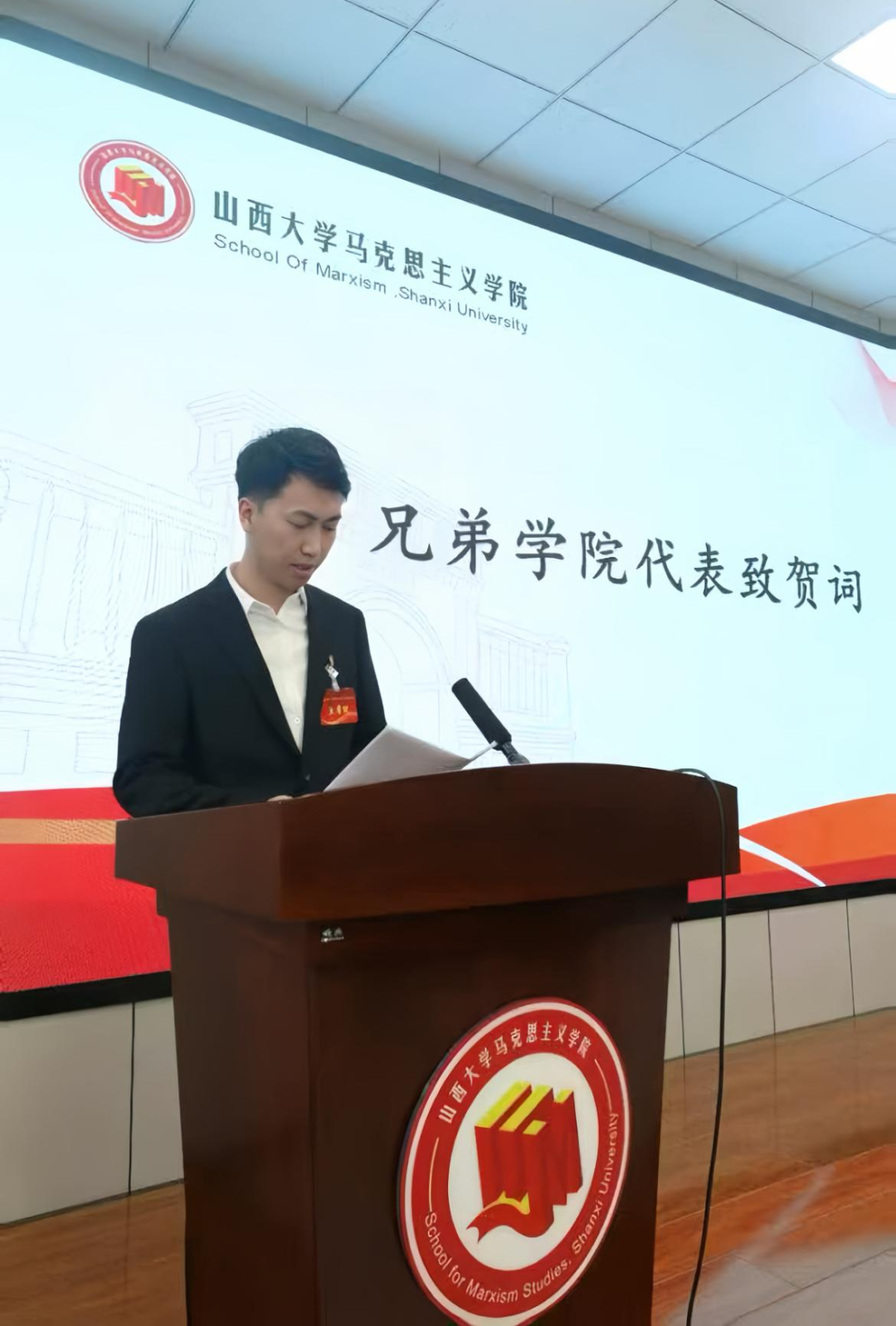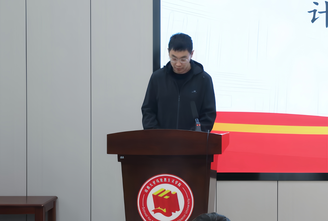 第八届研究生会主席张培科作工作报告,对研究生会过去一年工作进行了总结,并寄语新一届研究生会成员要深入挖掘马院特色优势,加强理论学习与实践工作的结合,密切联系和团结广大同学,为同学们提供更优质的服务。
