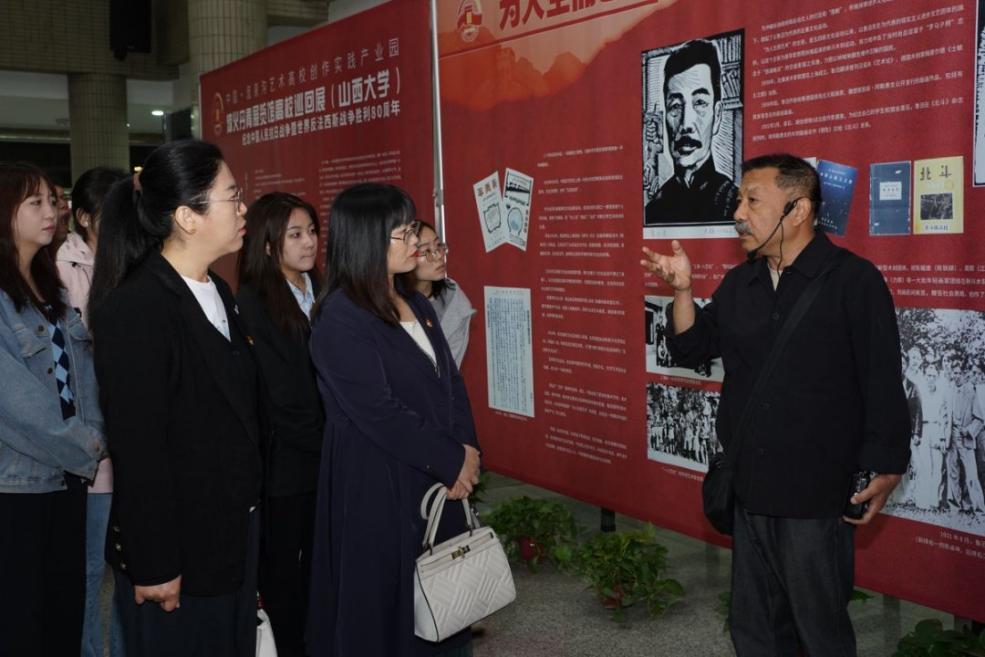 活动中,师生们一同观看了“烽火丹青”纪录片先导片。影片运用文献史料、口述采访、旧址拍摄等艺术手法,搭配生动的叙事,深度再现了以山西为核心的抗战美术史。
