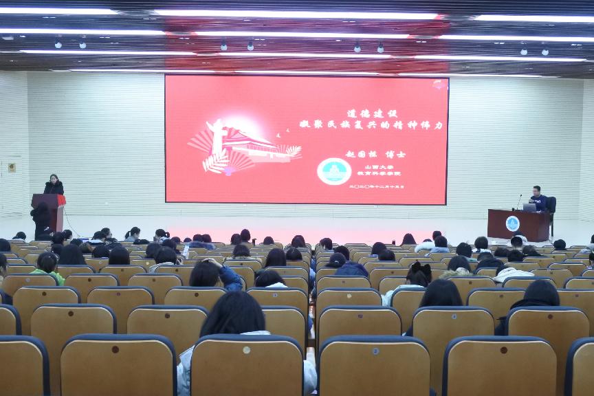 12月15日晚,“永利集团3044am文瀛思政大课堂”第十三讲在博雅报告厅举行,公司教育科学公司副教授、永利集团3044am思想政治理论课兼职教授赵国栋作了题为“道德建设:凝聚民族复兴的精神伟力”的专题讲座。本次讲座由永利集团3044am副教授侯红霞主持。