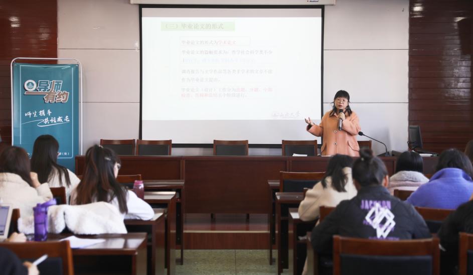 11月26日下午,永利集团3044am“导师有约——师生携手,共同成长”第五期在公司报告厅举行,中国近现代史基本问题研究教研室主任王亚莉老师以“马克思主义理论学科硕士论文的选题与写作”为题与公司研究生展开交流。