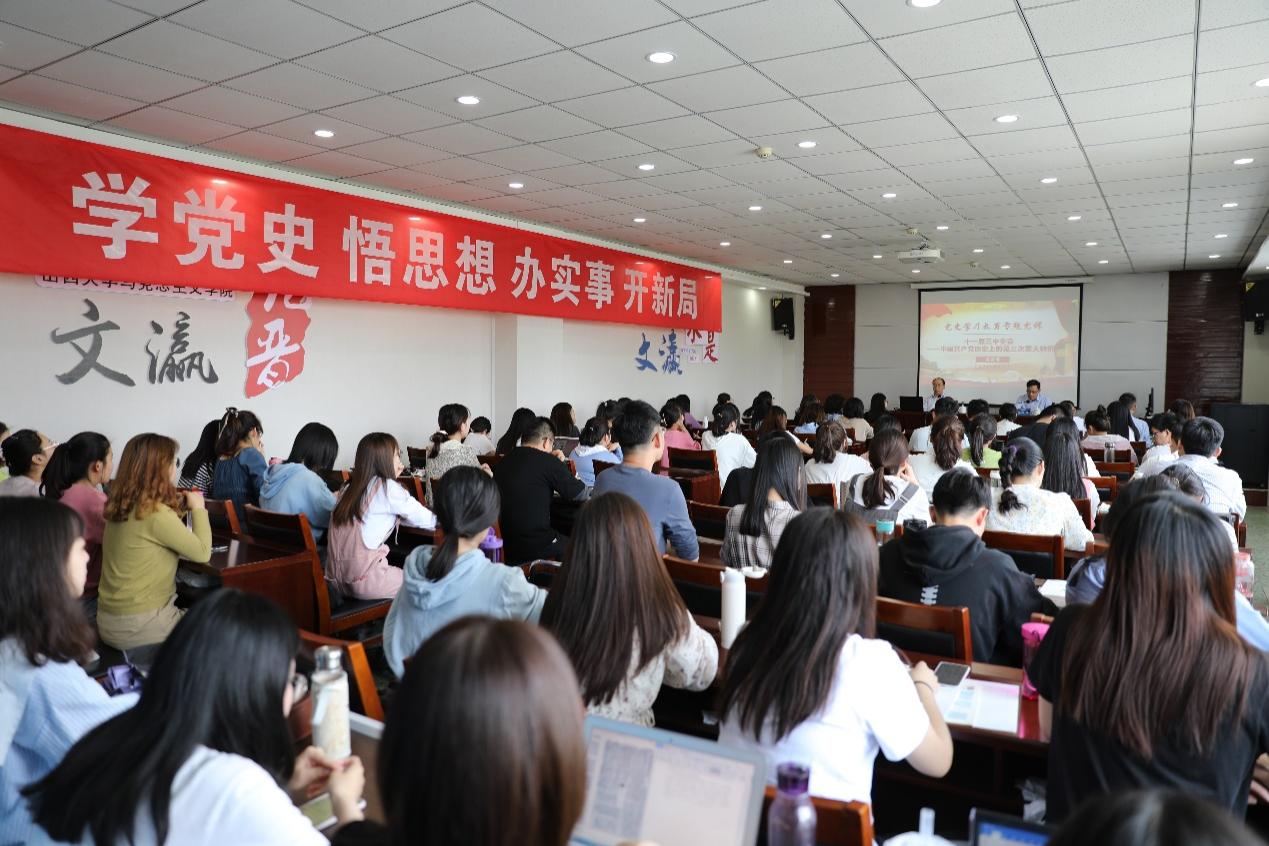 为深入贯彻习近平总书记在党史学习教育动员大会上的重要讲话精神,落实公司党史学习教育领导小组的安排部署,引导广大青年学子知史爱党、知史爱国。5月11日下午,公司党委副书记李富明以《十一届三中全会——中国共产党历史上的第三次重大转折》为题,为全体马院学子与教师代表做党史专题讲座,宣传部负责人聆听了讲座。