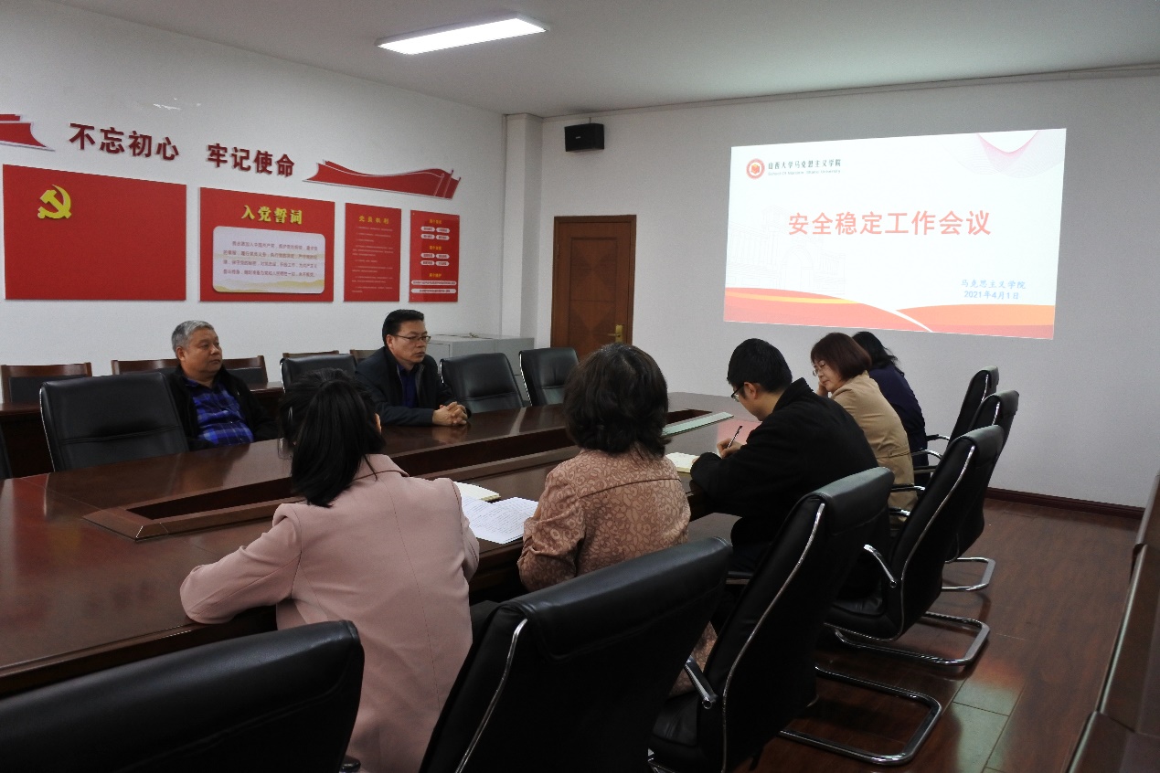 韩书保传达了公司安全稳定工作会议总体要求,并要求落实好会议精神:一是要思想上高度重视,克服麻痹思想,始终坚持安全稳定底线思维;二是要扎实、彻底排查隐患,落实安全责任;三是制度措施要落实,确保威胁校园安全的政治性事件、重大恶性事件、重大火灾隐患等绝不发生;四是落实好“党政同责、一把手负责、一岗双责、齐抓共管、失职追责、强化统筹协调”的安全管理机制。