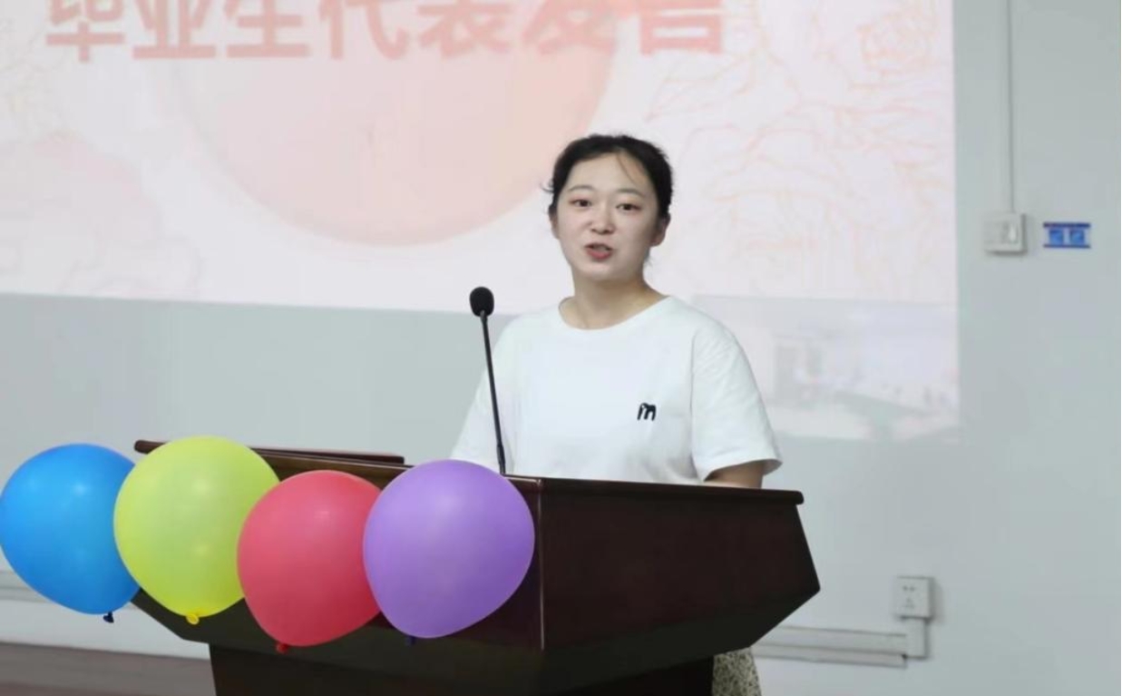 硕士毕业生代表卫敏分享了自己在永利集团3044am求学过程中的成长与收获,并以自身经历鼓励学弟学妹们要珍惜青春、努力学习。她表示,公司的关怀与爱护和老师们的悉心教诲令自己受益颇多,自己会始终牢记职责与使命,在未来的岗位上发光发亮,争做一名会学、能写、善讲的马克思主义理论践行者,并对各位领导、老师和同学们送上了真挚的祝福。