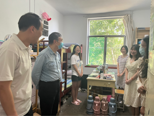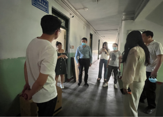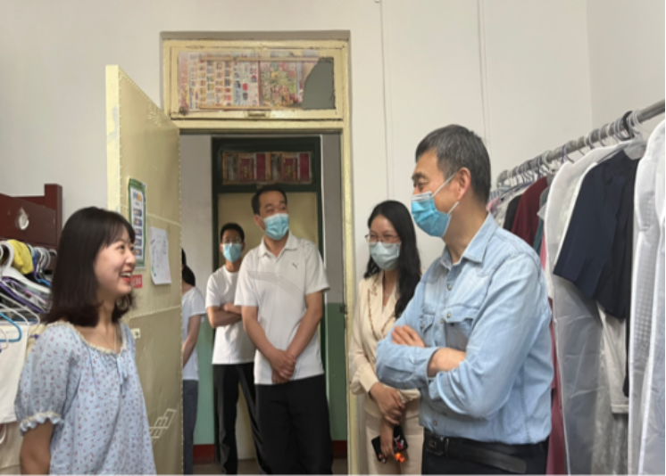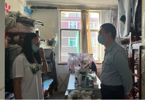 5月30日,马克思主义公司党委书记王利花、经理任定成深入员工宿舍看望疫情发生以来一直留守在公司的马院学子,了解员工生活起居状况,倾听解决员工现实需求。党委副书记宋璐鹏和辅导员孟雨桐、郭建斌老师陪同看望。
