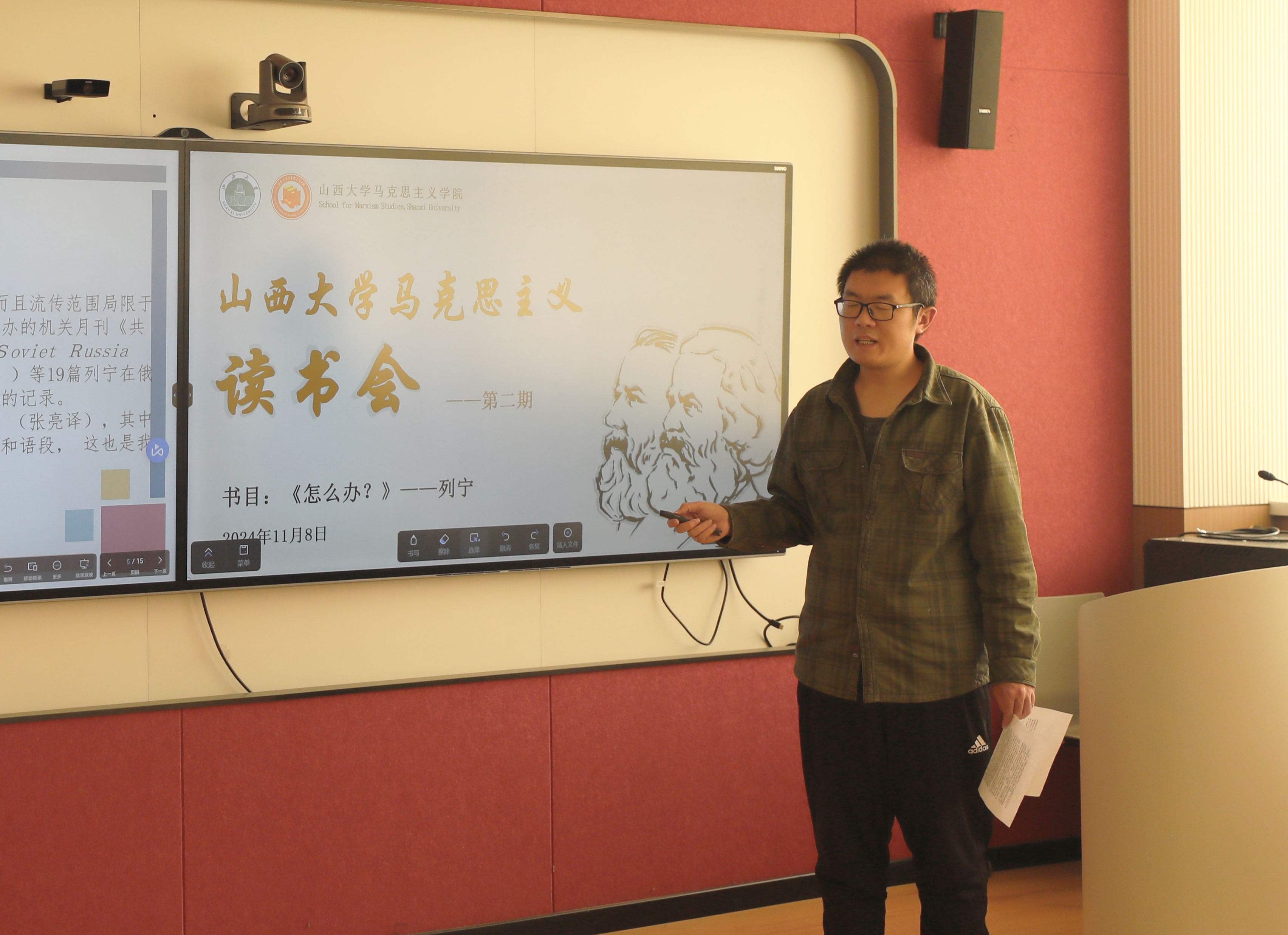 永利集团3044am博士研究生高敏、丁相程和李燕芳同学分别围绕本期书目列宁的《怎么办?》做读书汇报,分享了自己的研读心得。高敏从翻译入手,剖析了列宁著作中的“灌输”概念,并结合思政课的教学实践阐述了这一概念的当代意义。丁相程分析了“批评自由”这一口号的成因、实质和列宁的批评,提出必须坚持以马克思主义理论为指导,对大众进行宣传教育。李燕芳主要围绕《怎么办?》的文本,阐发了列宁无产阶级政党理论的丰富内涵及其对新时代党的建设的重要启示。