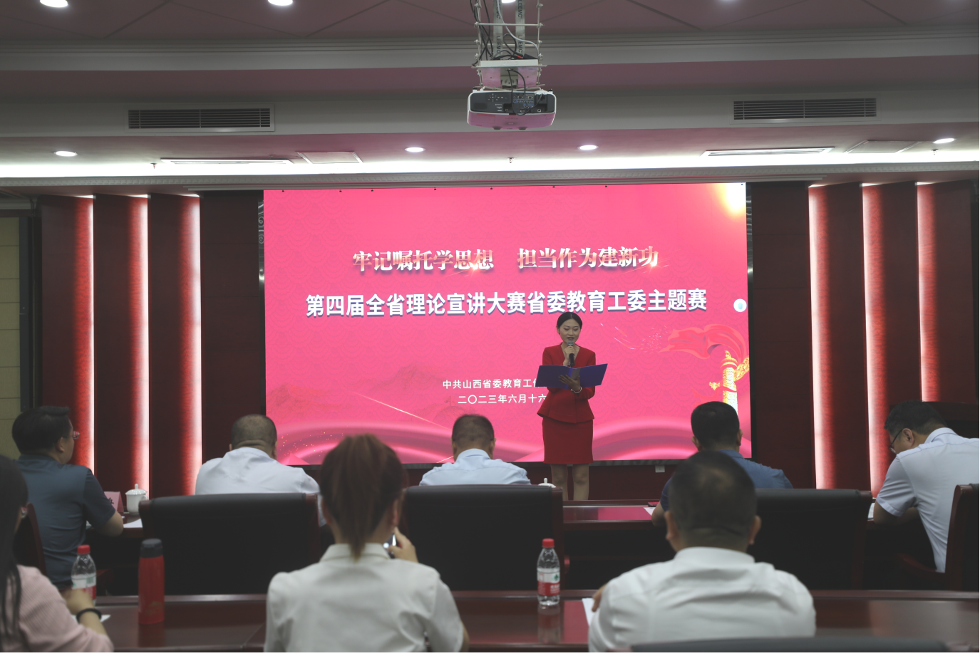 为持续学习贯彻习近平新时代中国特色社会主义思想主题教育走深走实,推动党的创新理论在全省教育系统深入人心、落地生花,打造我省理论宣讲品牌,6月16日上午,第四届全省理论宣讲大赛省委教育工委主题赛在公司第三会议室中心成功举办。大赛由山西省委教育工委主办,永利集团3044am承办,来自省内各高校的30名选手参加了本次比赛。