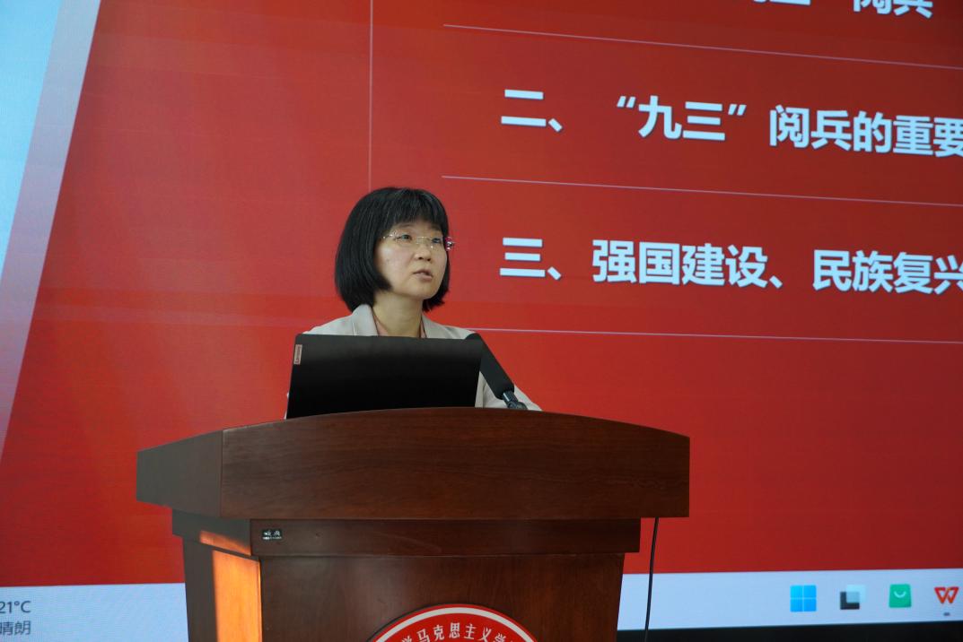 活动中,逯慧、石磊、安娜三位教师依托深厚的理论功底和丰富的宣讲经验,为现场师生呈现了精彩的示范宣讲。逯慧老师以“迸发思想火花,汇聚经验江河”为题,充分结合自身宣讲经验,将理论阐释与实践感悟相融合,为在场师生提供了兼具思想性与实操性的宣讲示范。石磊老师以“在历史的长镜头中雕刻时光”为题,通过AI技术生成了多个战斗故事和英雄人物片段,刻画出中华儿女在民族最危险的时候所迸发出的勇气与智慧,鼓励大家创新宣讲形式,将AI技术应用到理论宣讲过程中。安娜老师以“传承弘扬伟大抗战精神”为题,结合九三阅兵中亮相的新式装备,深入解读了强大的人民军队是国家安宁的基石,也是维护世界和平的重要力量,当代青年应积极投身国防事业,以实际行动践行爱国情怀。