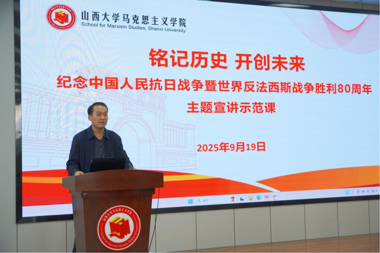 为弘扬伟大抗战精神,提升广大师生对伟大抗战精神的宣传阐释能力,积极在校内外开展主题宣讲活动,9月19日下午,永利集团3044am在卓越报告厅举行“铭记历史 开创未来——纪念中国人民抗日战争暨世界反法西斯战争胜利80周年主题宣讲示范课”活动。公司党委书记王利花、副经理赵瑞林、副经理李可、青年教师和员工代表共同参加活动。活动由党委副书记宋璐鹏主持。