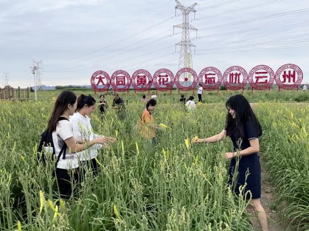 2022年8月8日,永利集团3044am暑期“三下乡”社会实践团第二分队来到大同市有机黄花标准化种植基地,寻访领袖足迹,重温领袖指示。在云州区西坪镇唐家堡村的黄花主题公园,同学们漫步乡野之间,体验采摘黄花的乐趣,参观黄花烘干过程,帮助合作社村民将黄花装筐,让实践队员们目睹了云州区大力发展黄花产业、扎实推进乡村振兴的累累硕果,体会了村民们在乡村振兴的道路上那股“咬定青山不放松”的干劲和韧劲。“习近平总书记的殷殷嘱托如春风一般吹遍云州大地,作为大同人,我们亲眼见证了近年来家乡的黄花从小规模种植向产业化、规模化发展,黄花的种植富了乡亲,美了乡村,带领家乡村民大步踏上乡村振兴之路。”实践团大同学子吴楠难掩心中的激动之情。2020级硕士研究生毕凯说:“大同黄花产业的形成与发展是马克思主义经济理论与大同云州具体实际相结合的产物,在深刻体会广大村民昼夜忙碌艰辛的同时,我也更加明白了‘用脚步丈量祖国大地,用眼睛发现中国精神,用耳朵倾听人民呼声,用内心感应时代脉搏’的重要意义。”