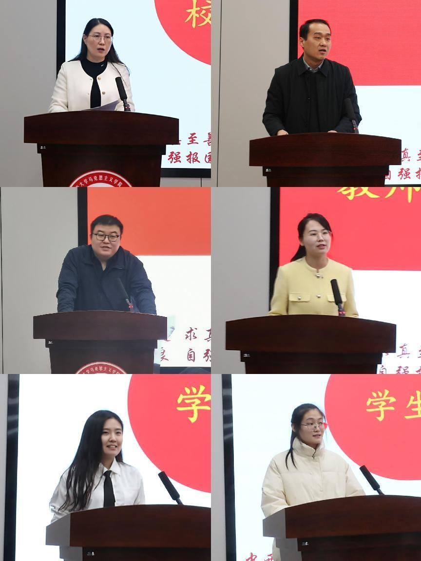 会上,继续教育公司硕士研究生李薇和考古文博公司本科生刘紫瑜作为员工代表分别分享了思政课学习心得,他们表示,思政课是老员工学习理解马克思主义中国化时代化理论成果,培养老员工社会责任感和使命感的重要途径,作为青年学子要珍惜学习机会,认真听、用心悟,把思政课学习与专业学习有机结合起来,扎根中国大地,以昂扬向上的姿态肩负起时代使命。思政课教师代表邓韬、何彦霏老师分别从思政课的作用、教学内容、教学方法以及如何学习思政课等方面分享了自己的教学心得。他们希望同学们能通过思政课理论知识的学习和实践,坚定马克思主义信仰和中国特色社会主义共同理想,形成正确的世界观、人生观和价值观,争当德智体美劳全面发展的时代新人。